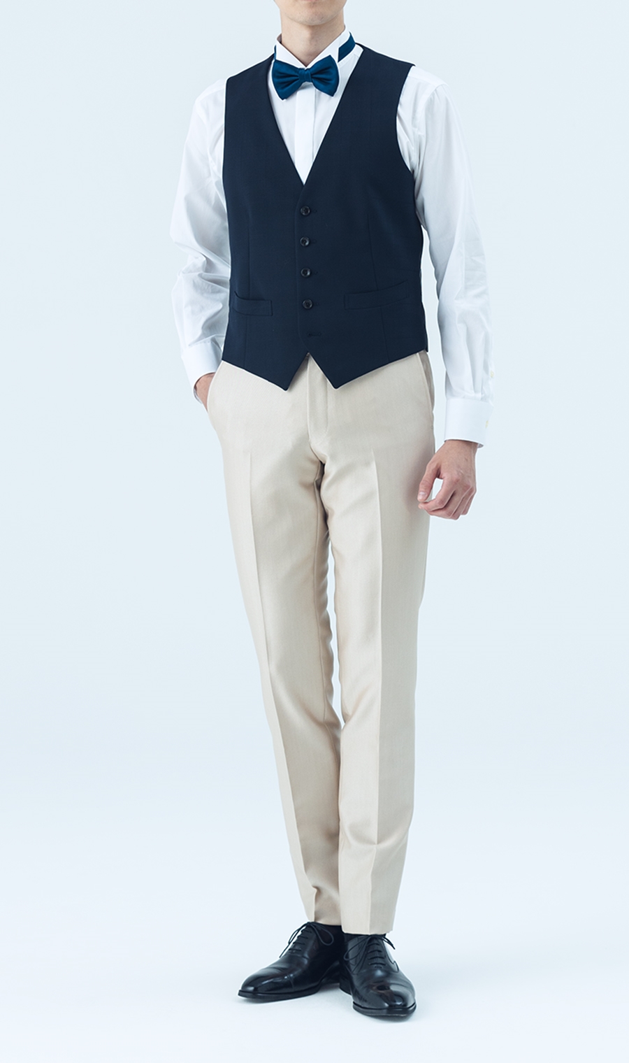 1.スリーピーススーツ(ジャケット・ベスト・スラックス)※スラックスはウエストアジャスター付