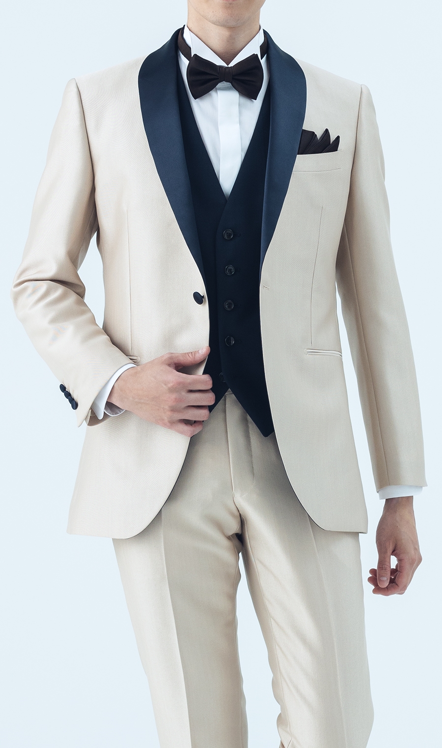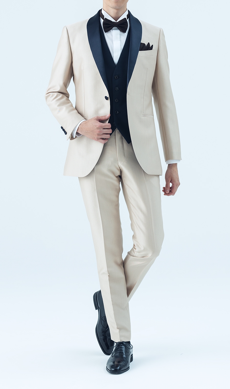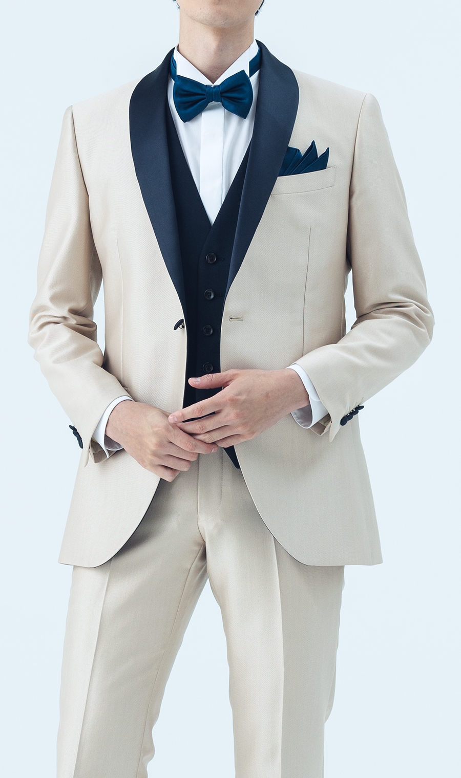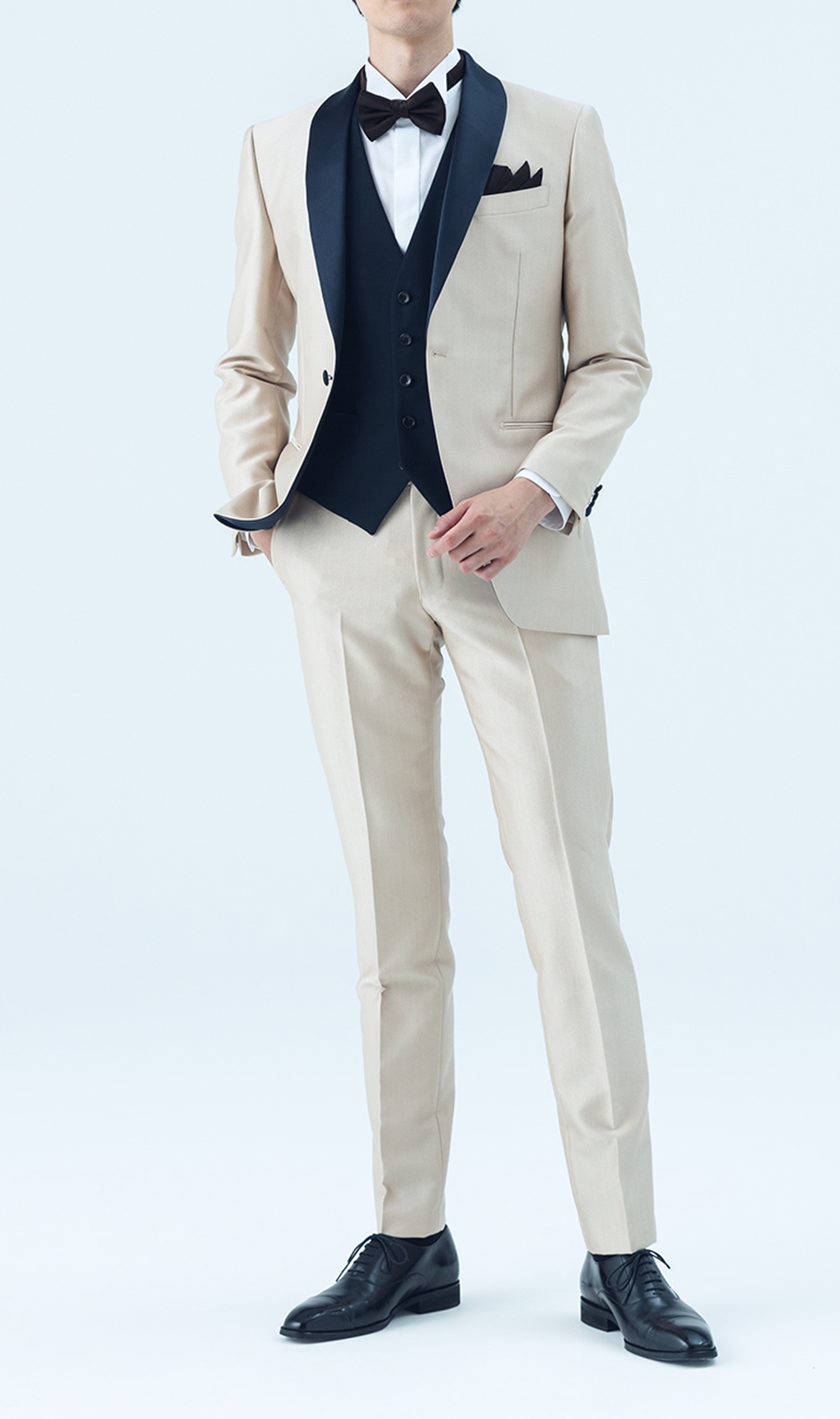 クリアなシャンパンゴールドカラーが優美な魅力を放つタキシード。