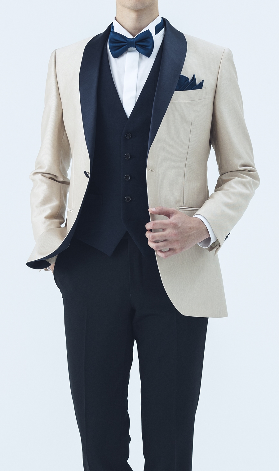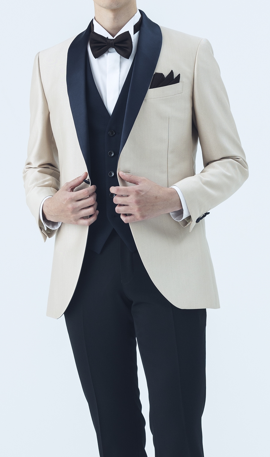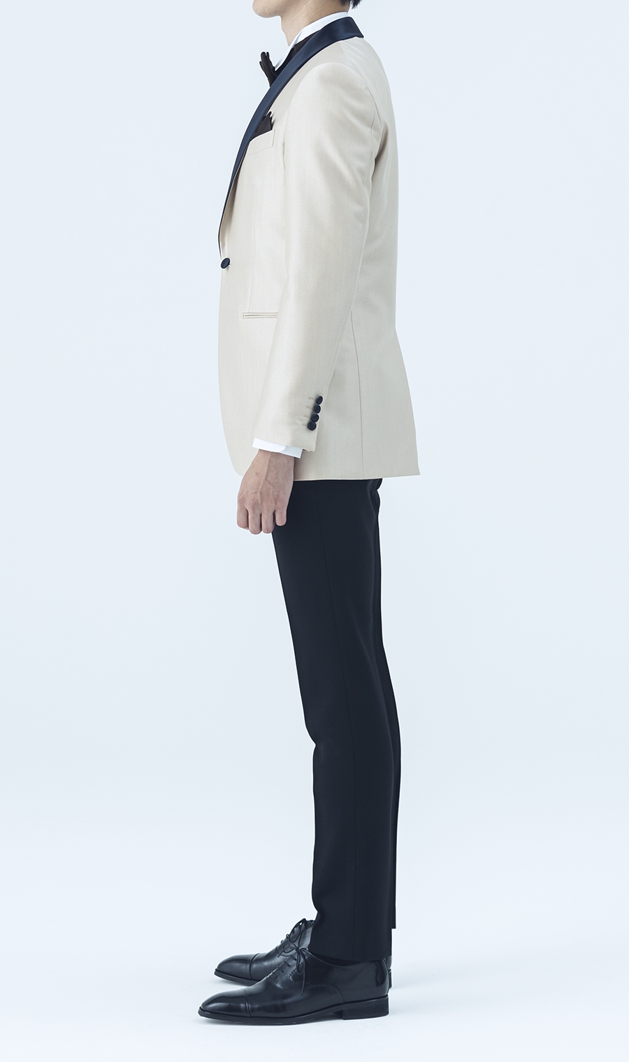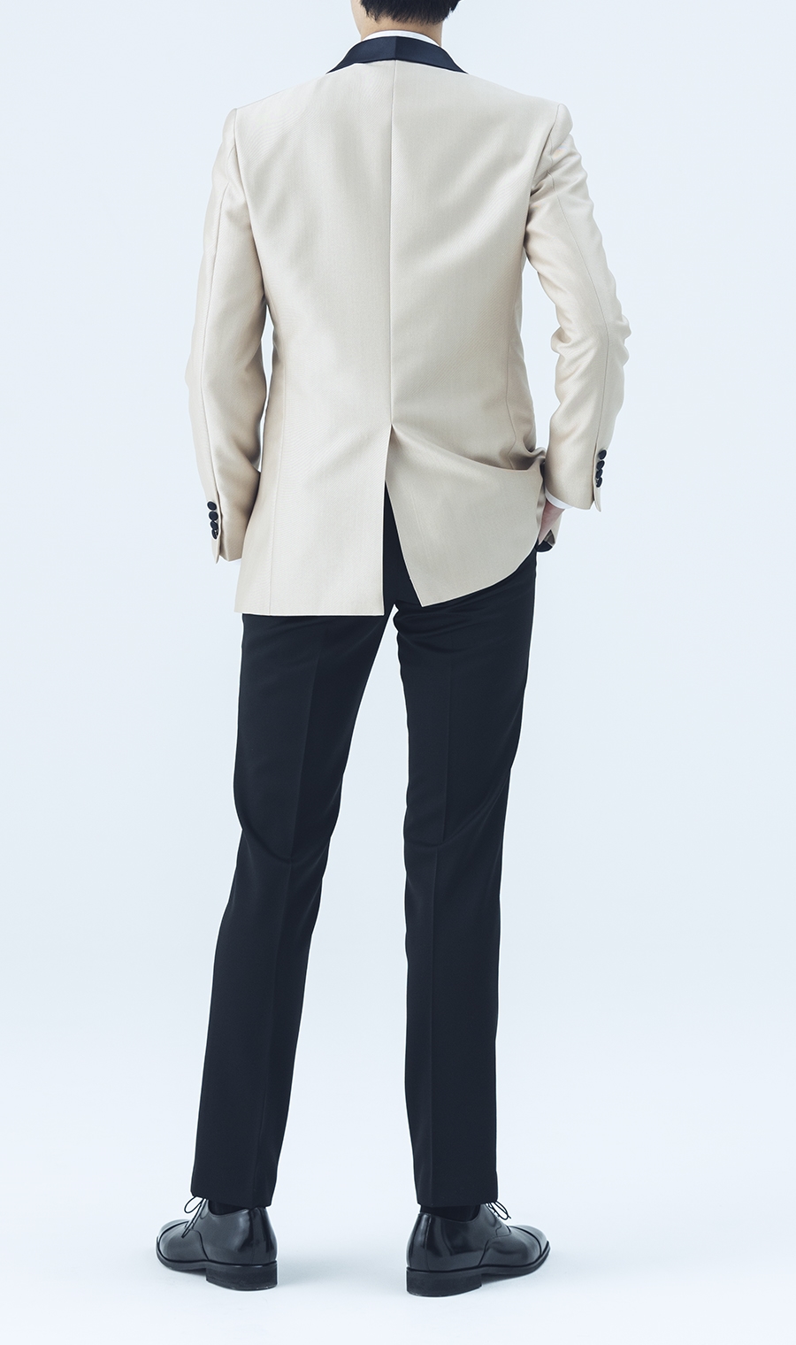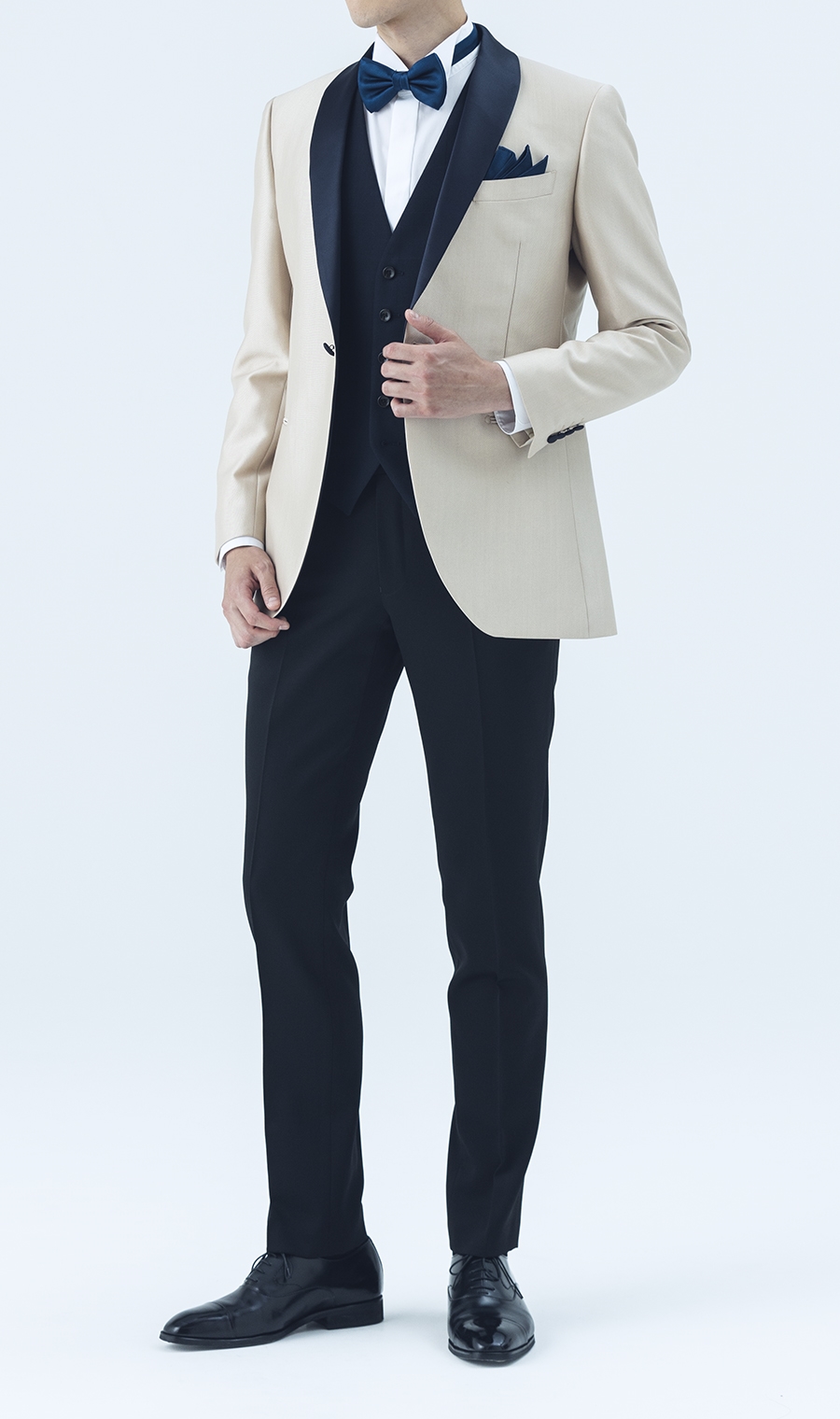 クリアなシャンパンゴールドカラーが優美な魅力を放つタキシード。