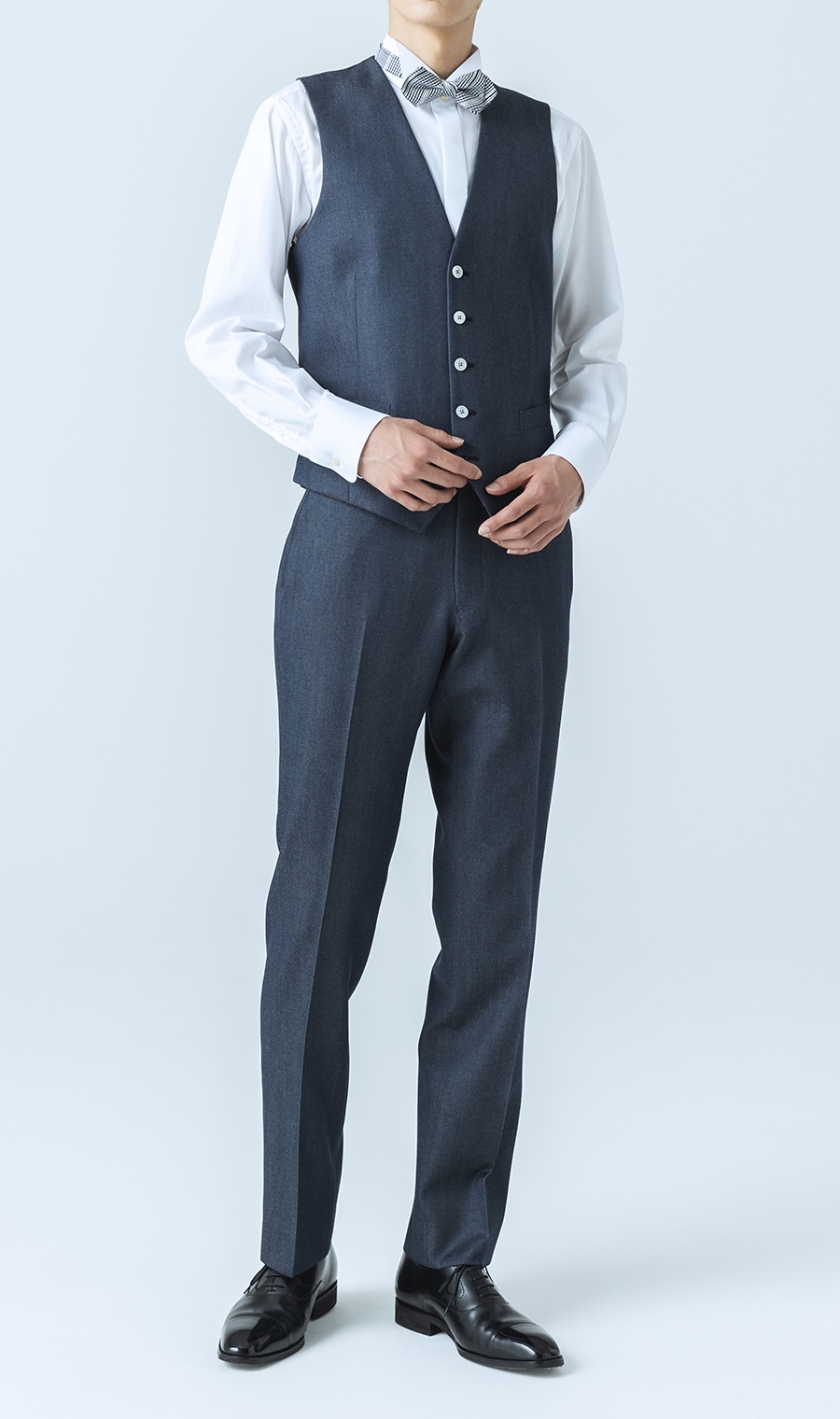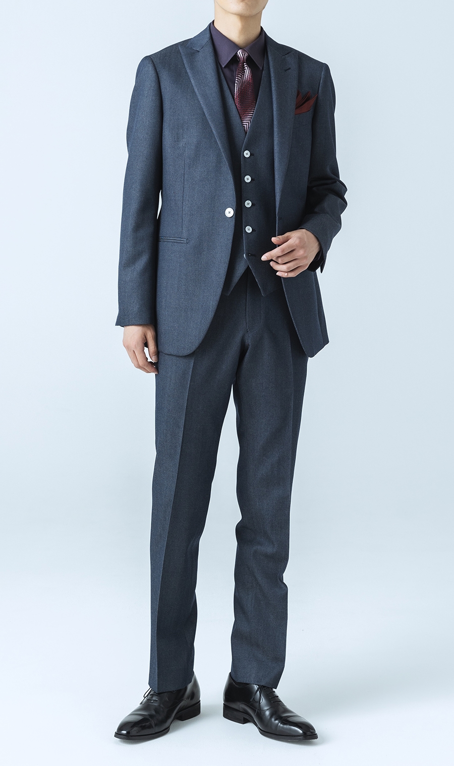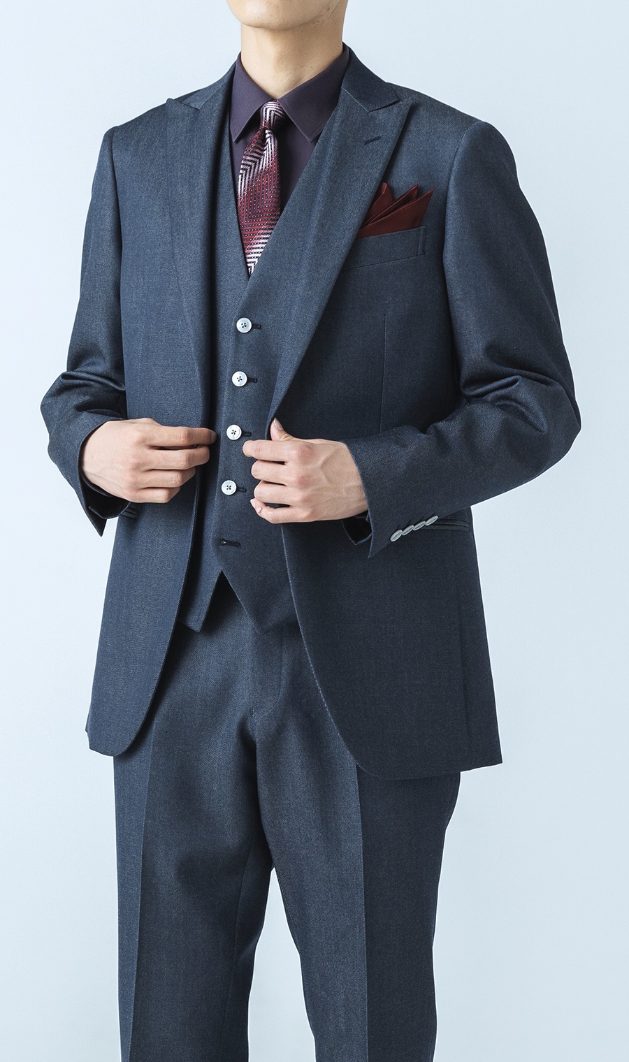 1.スリーピーススーツ(ジャケット・ベスト・スラックス)※スラックスはウエストアジャスター付