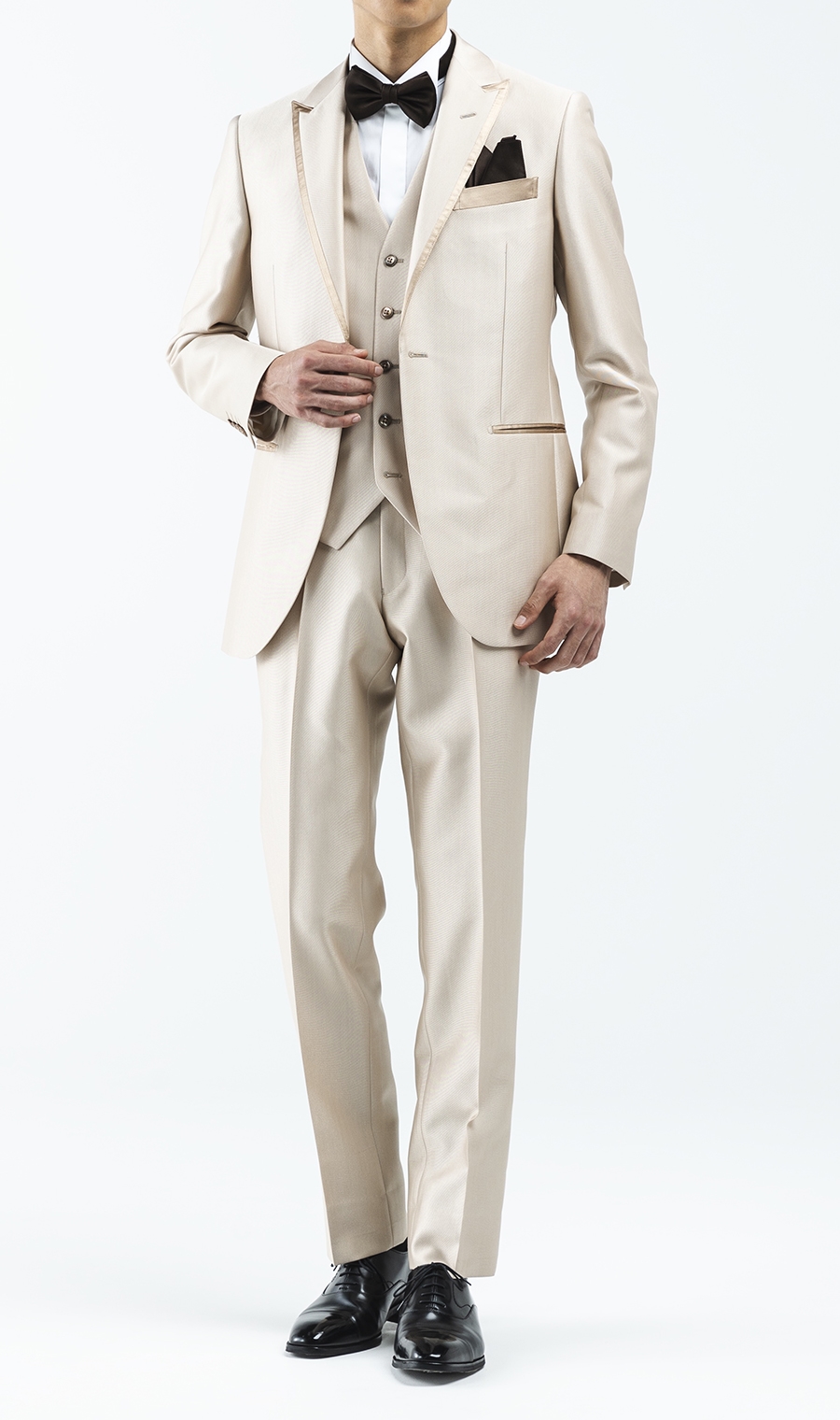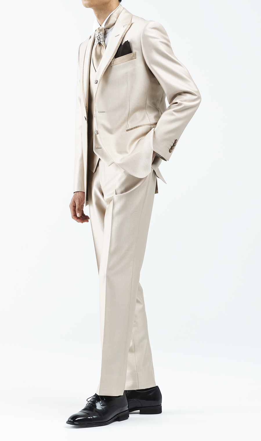 ここ数年にて新たな流行となっている<オレンジ系ゴールドベージュ>カラーのタキシード。