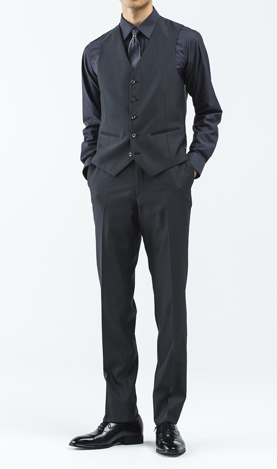 1.スリーピーススーツ(ジャケット・ベスト・スラックス)※スラックスはウエストアジャスター付