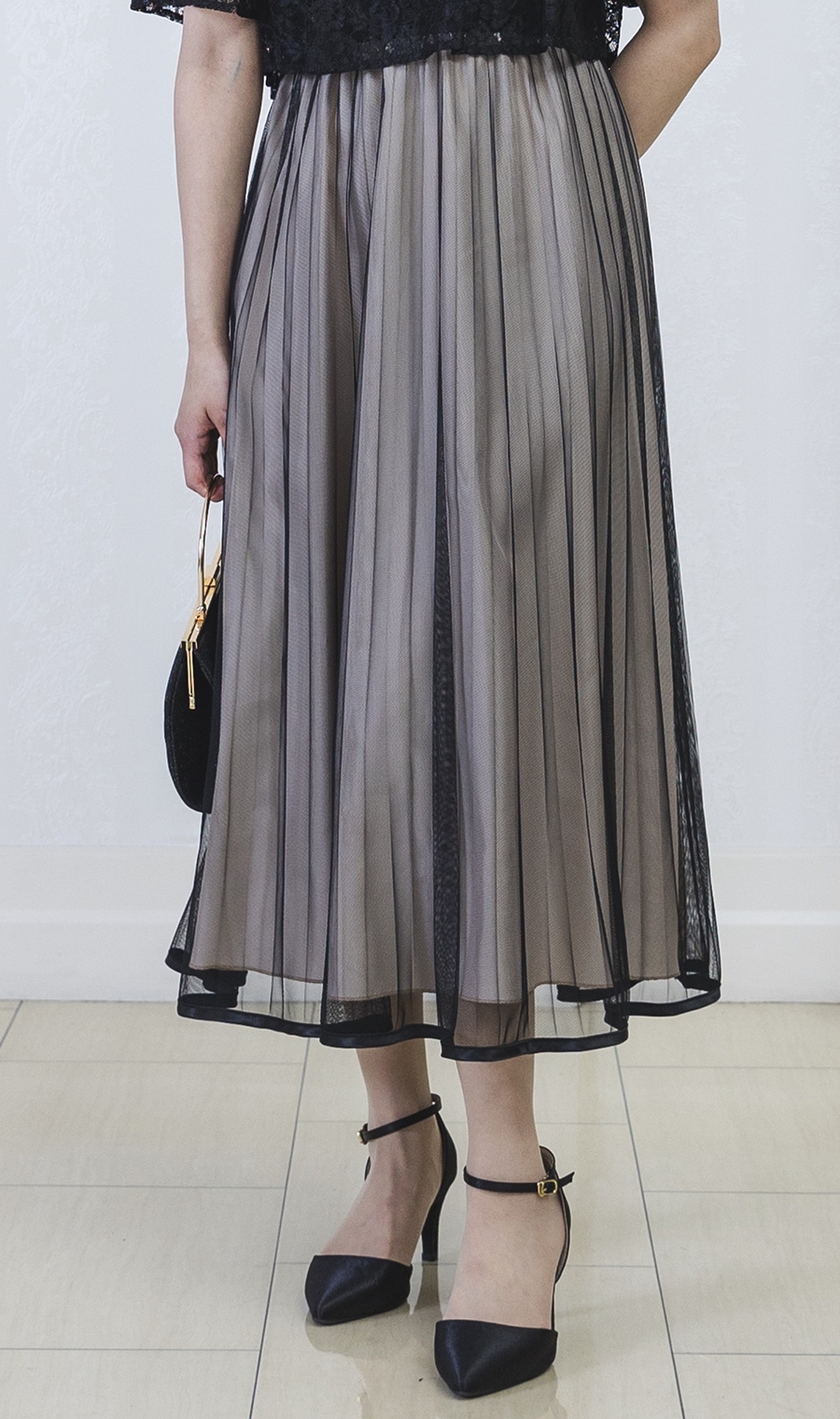 【レース×チュールプリーツワンピース】
