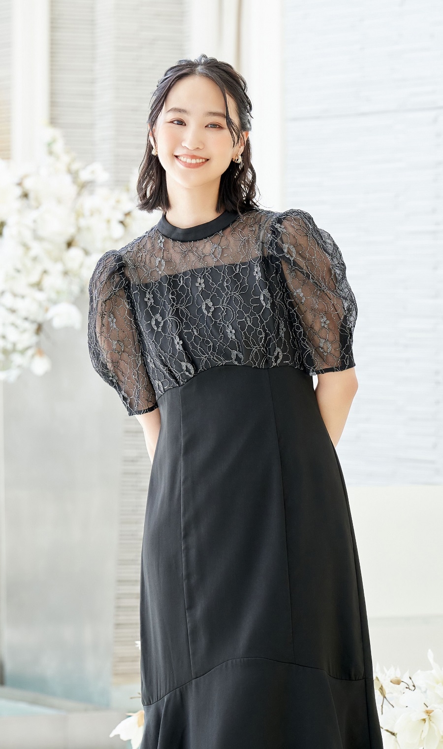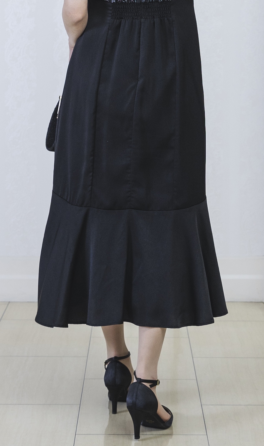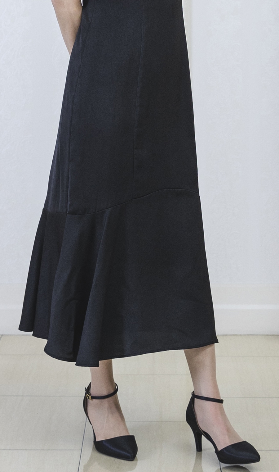 マーメイドシルエットが曲線を美しく際立たせ、デザインのポイントになっています。