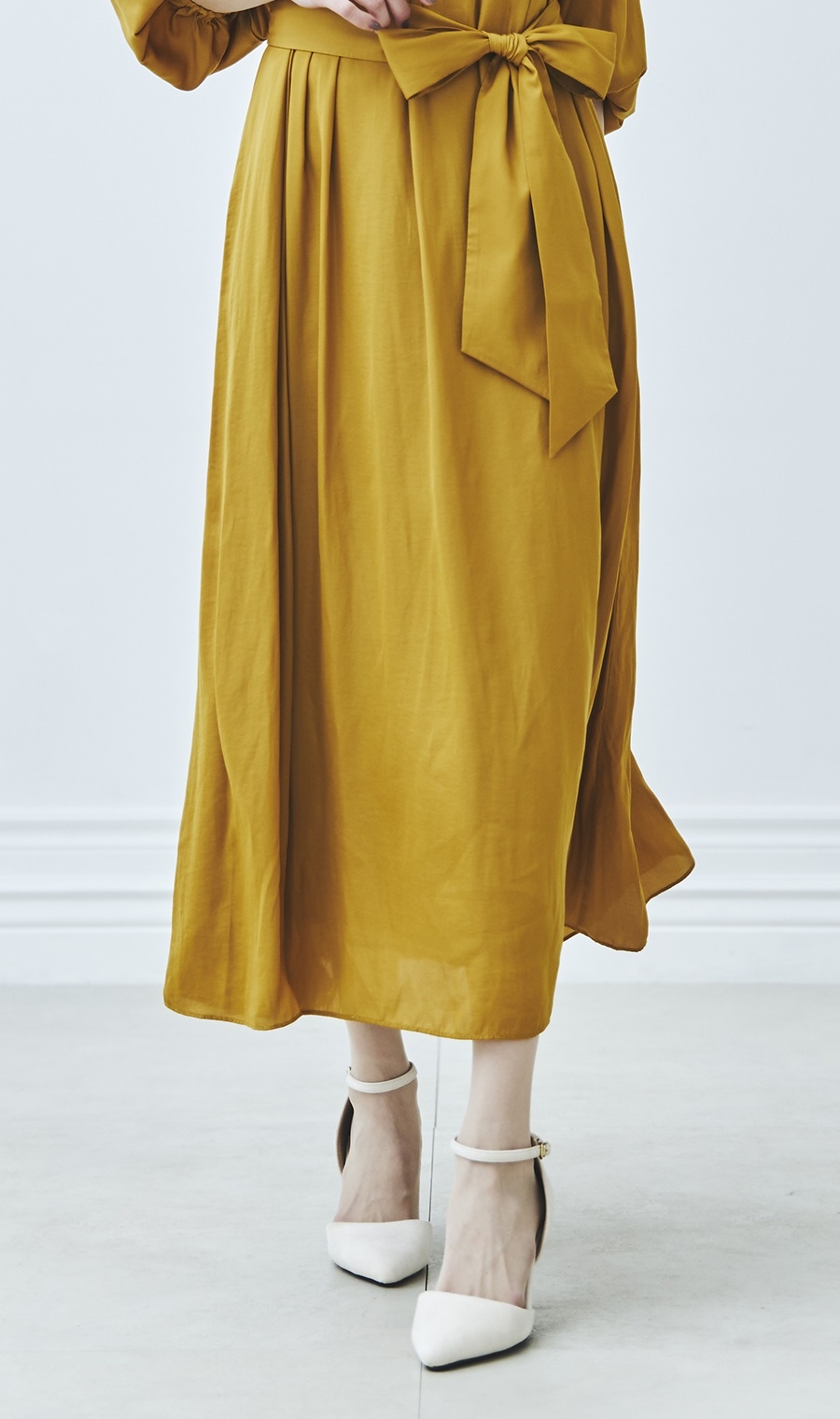 サテンウエストリボンドレス