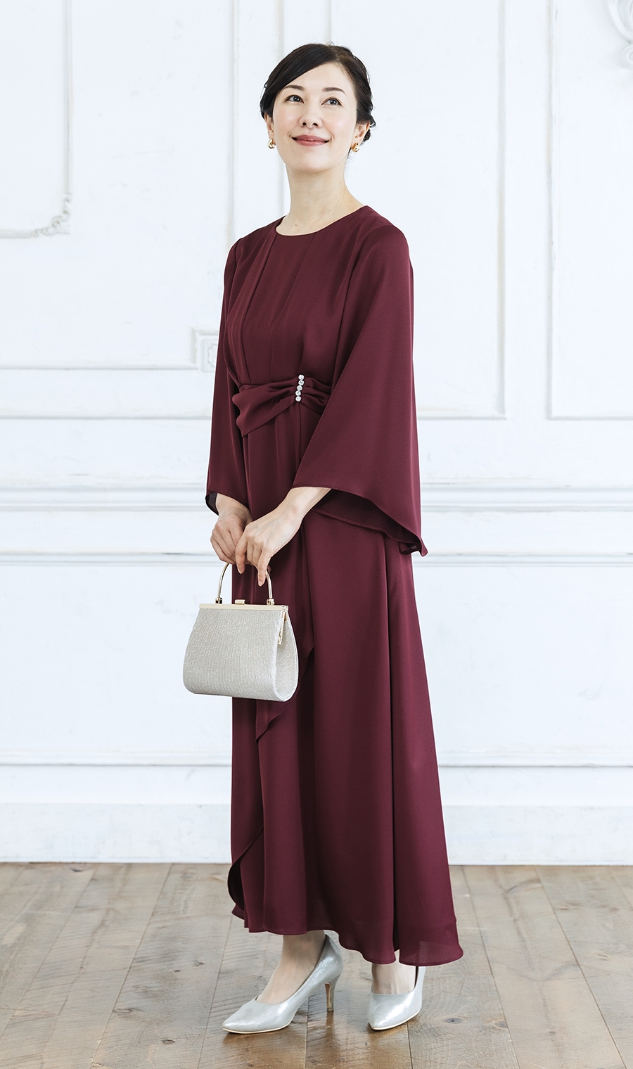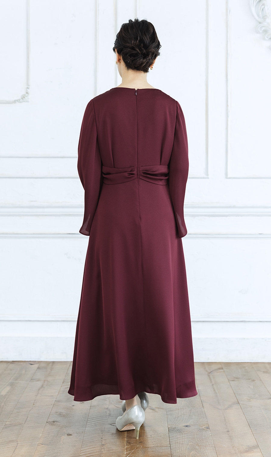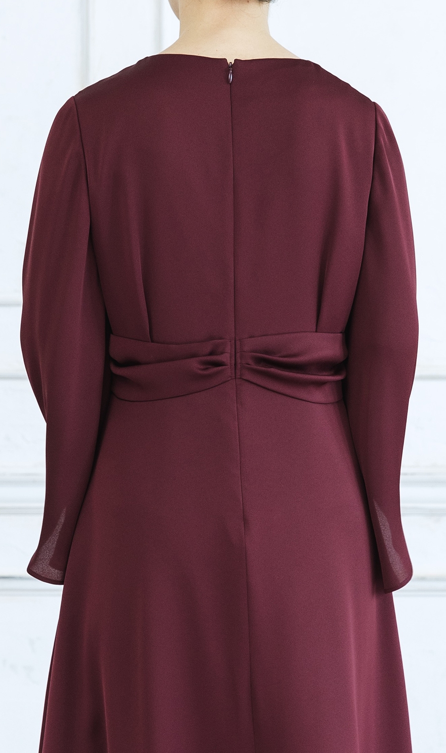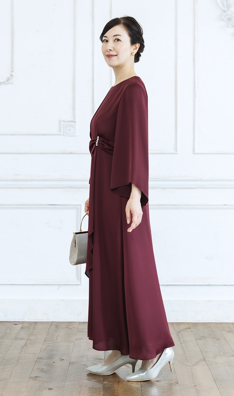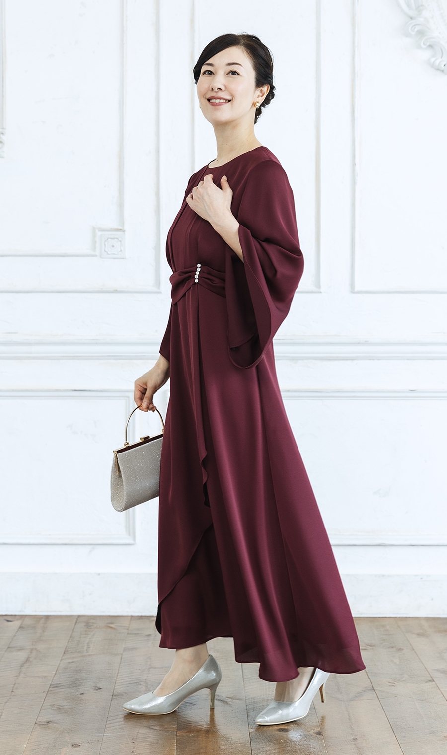 フレアをふんだんに入れた袖は、長めの丈で流れるようなラインが手の所作を美しく見せてくれるので、細部までエレガントに。
