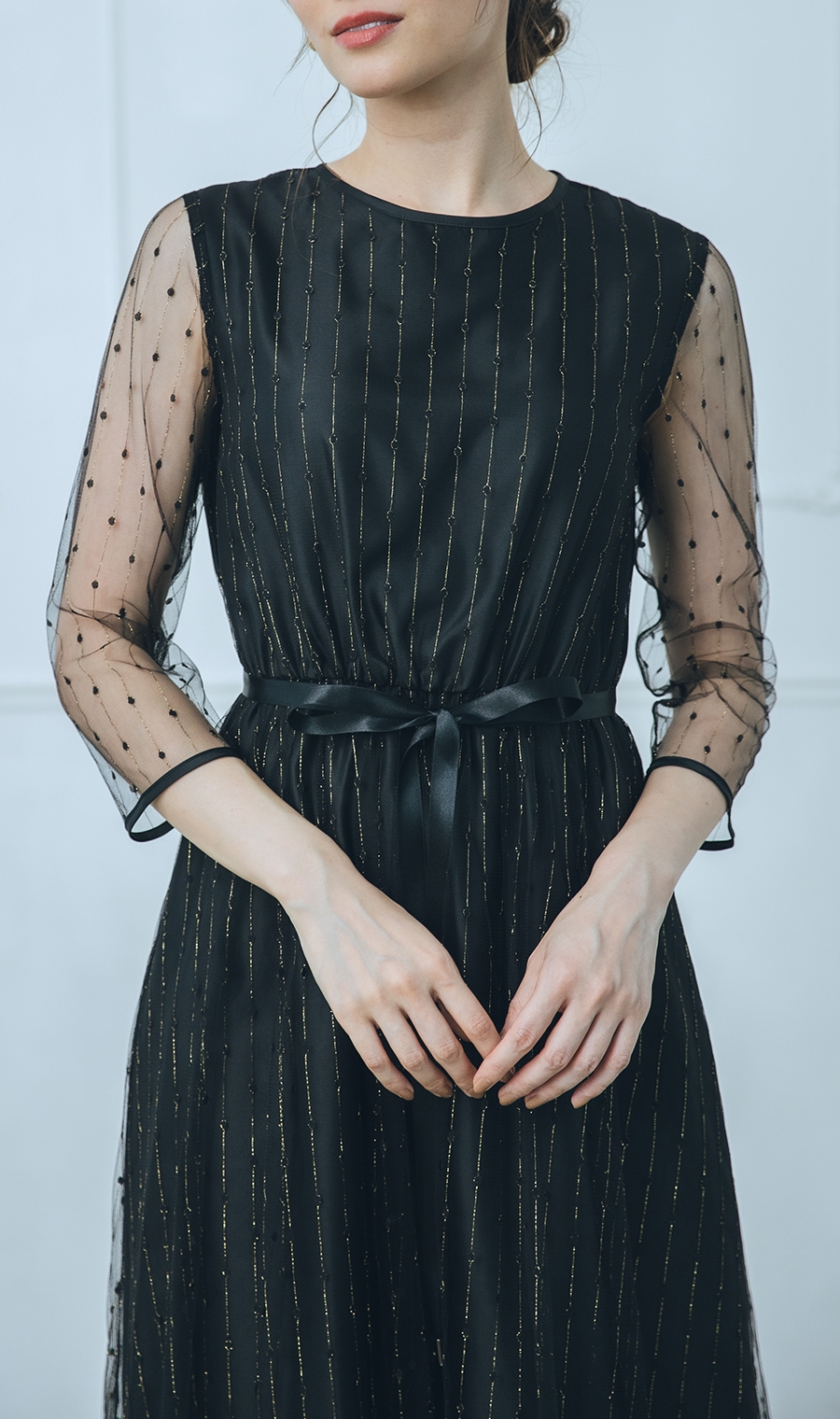 チュールに施された金糸刺繍が、