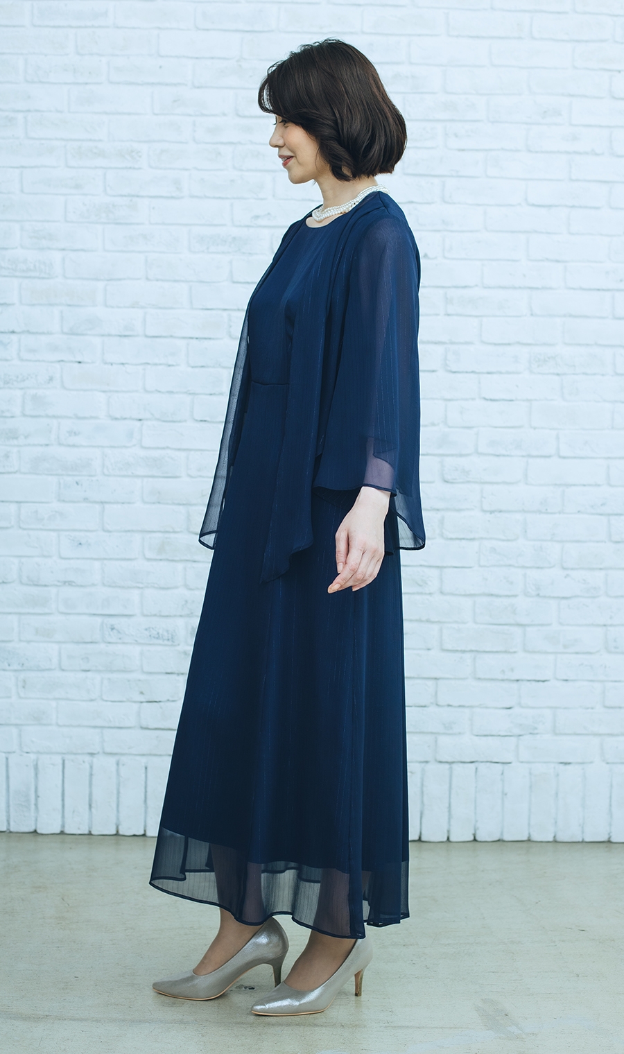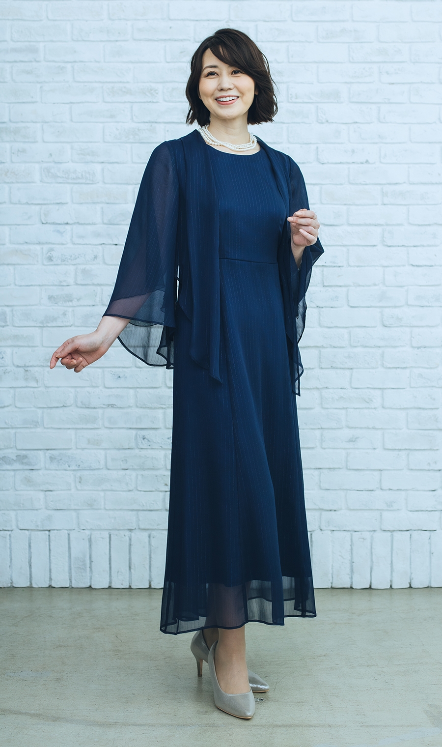2WAYの着こなしが楽しめるショール風のドッキングドレス。