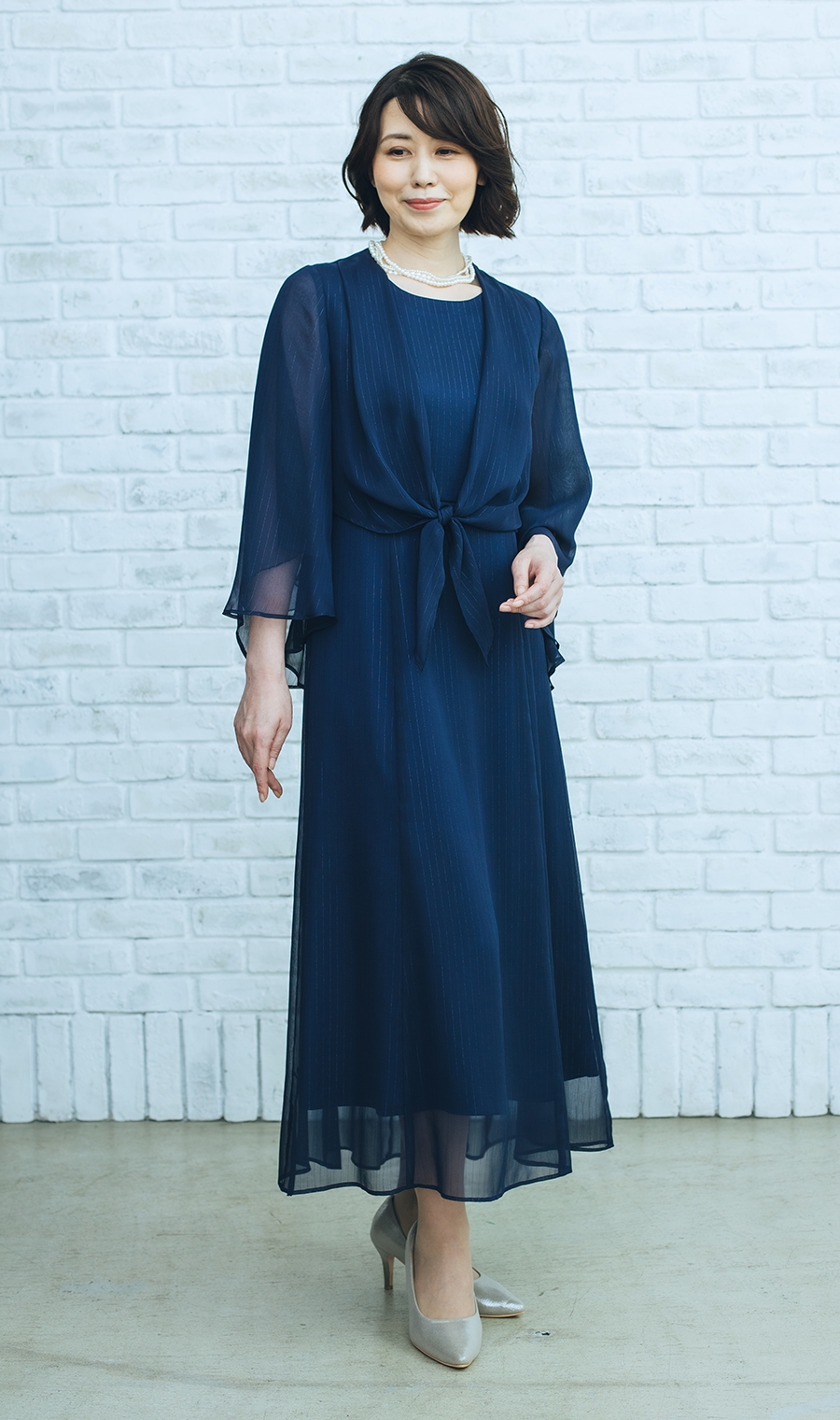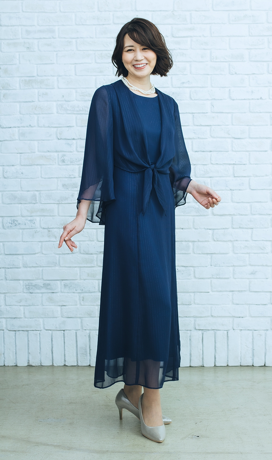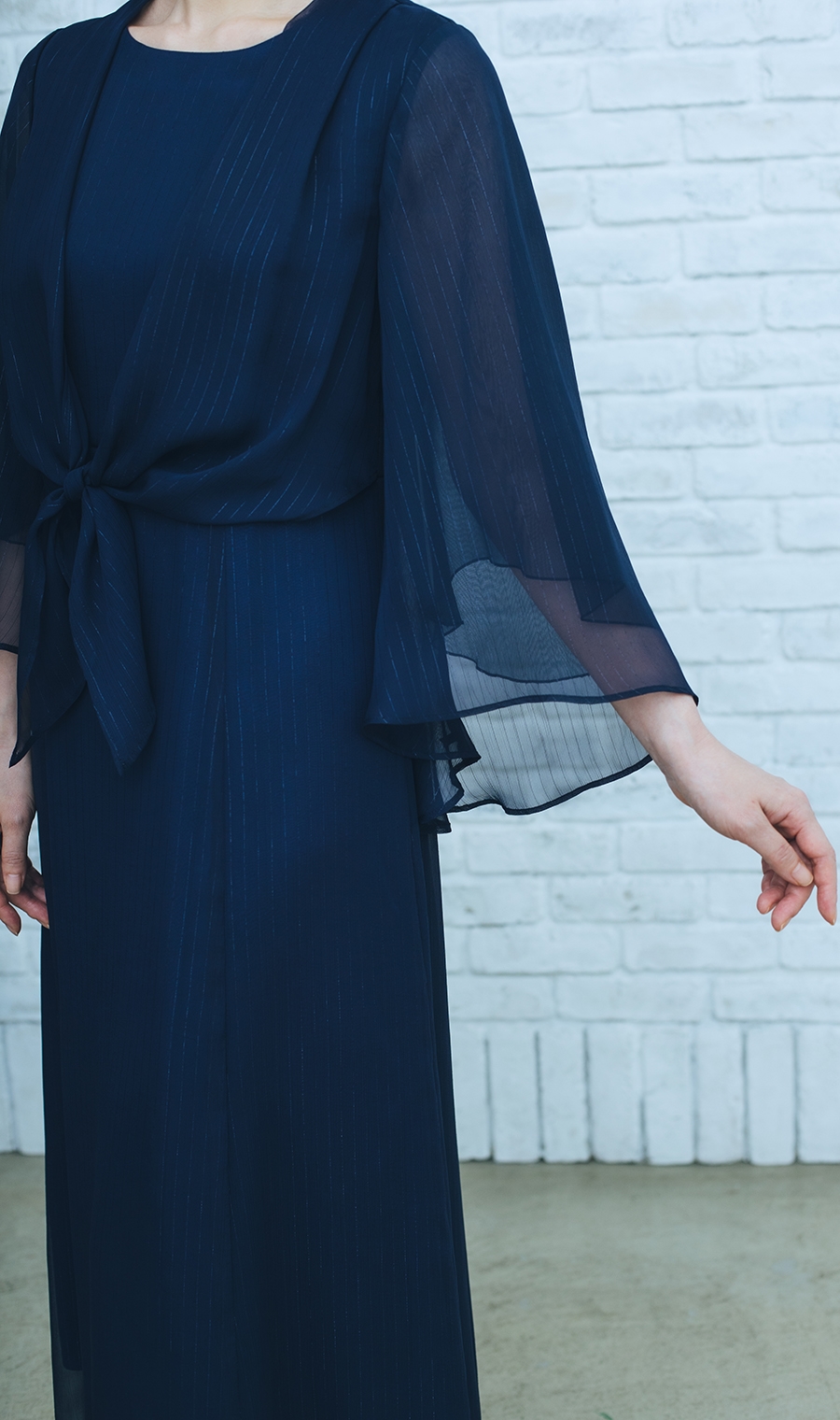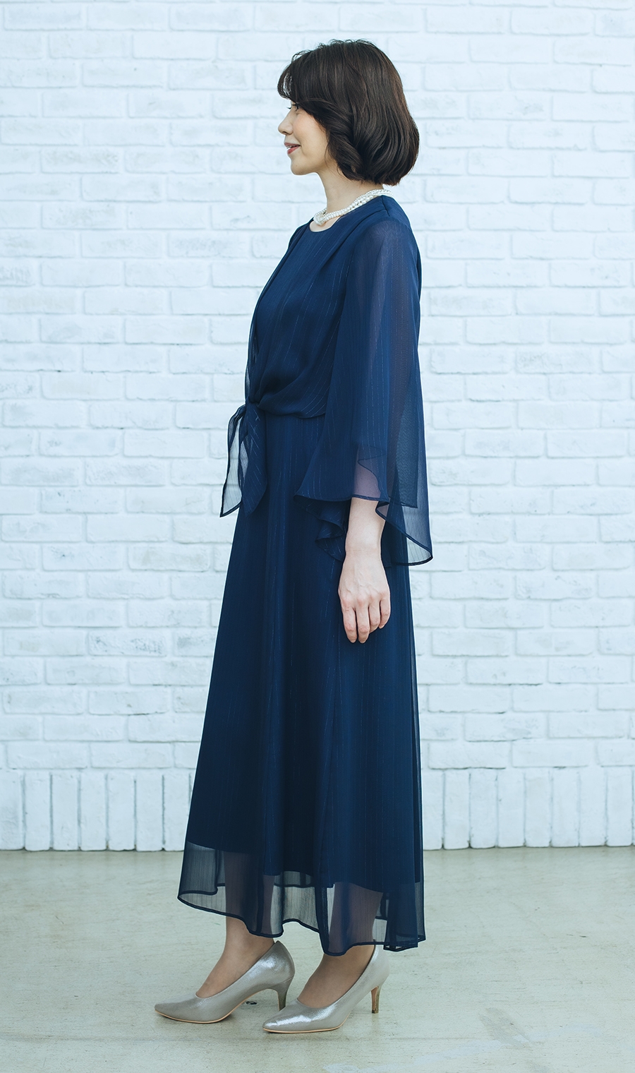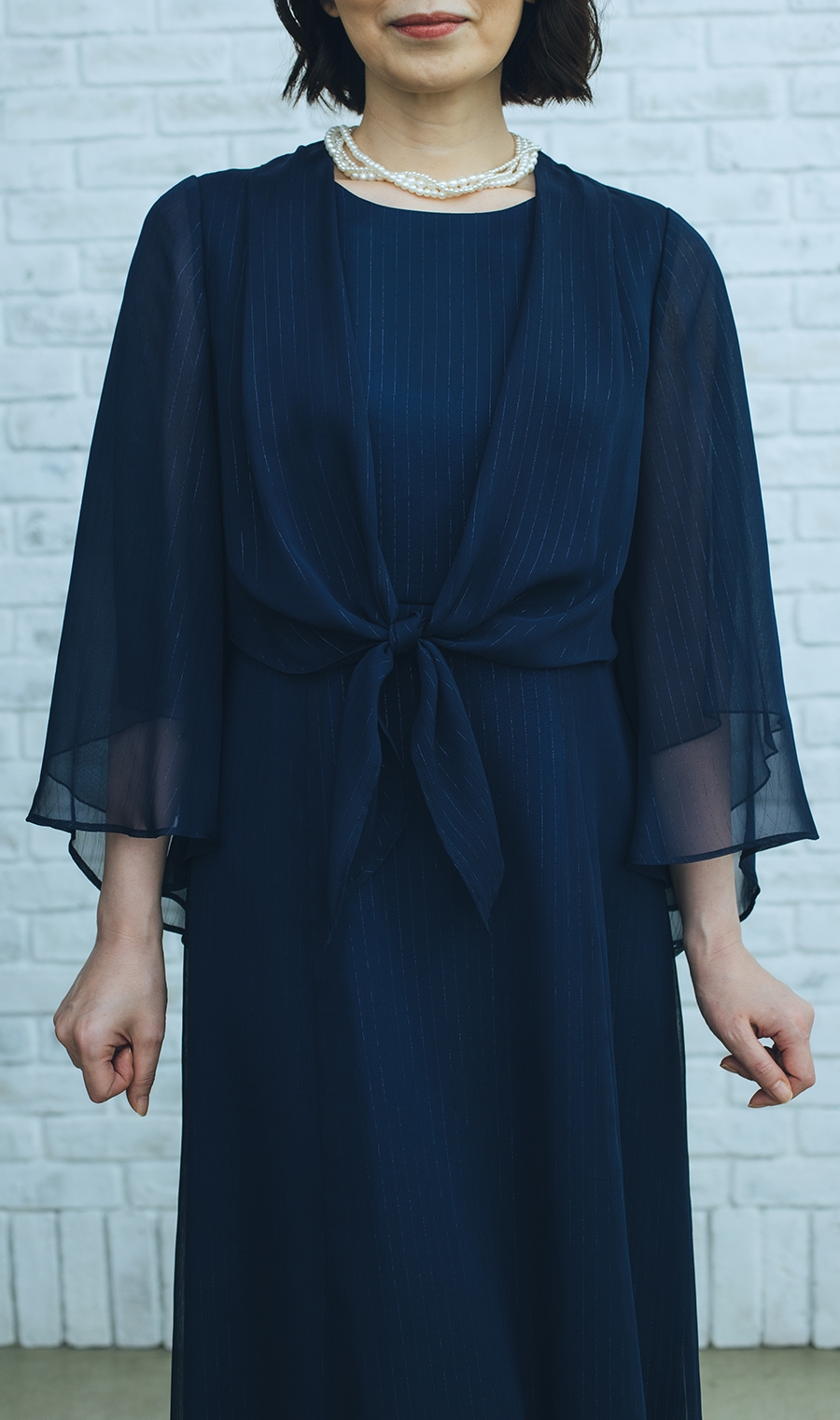 ドレープを活かしても、前でひと結びしてメリハリのある