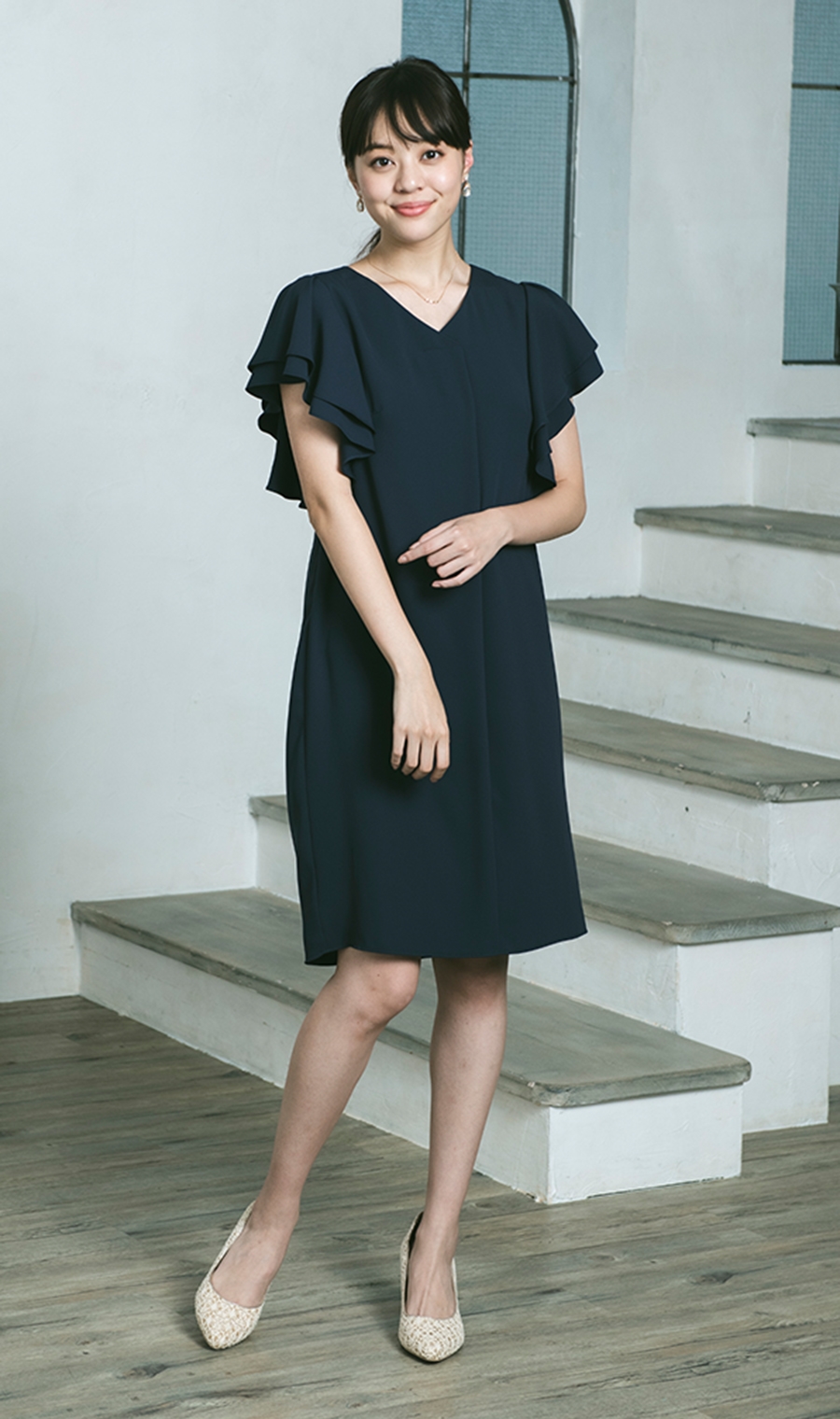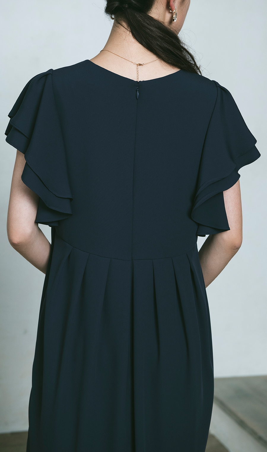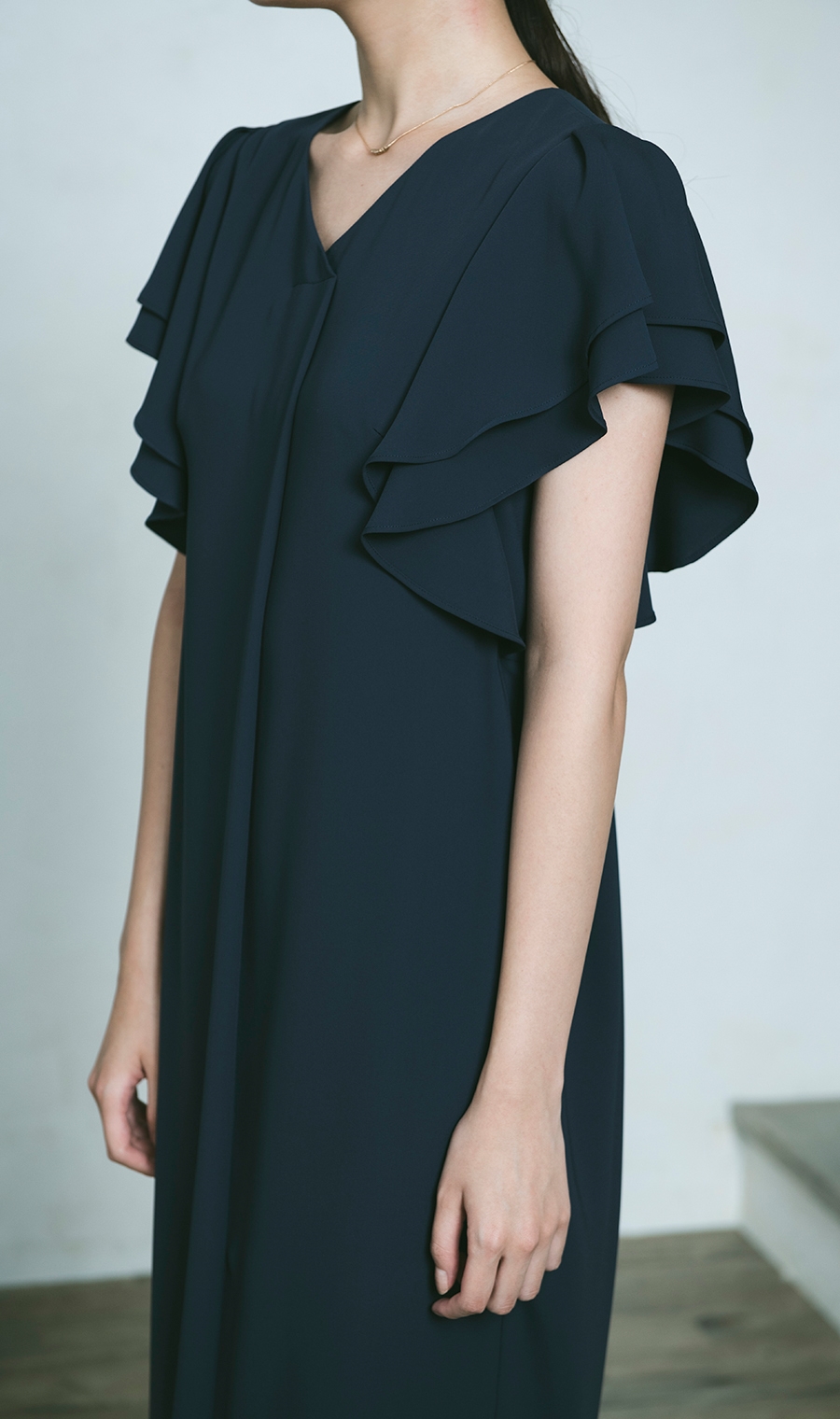 ふんわりと揺れる二枚仕立てのフリルスリーブが、
