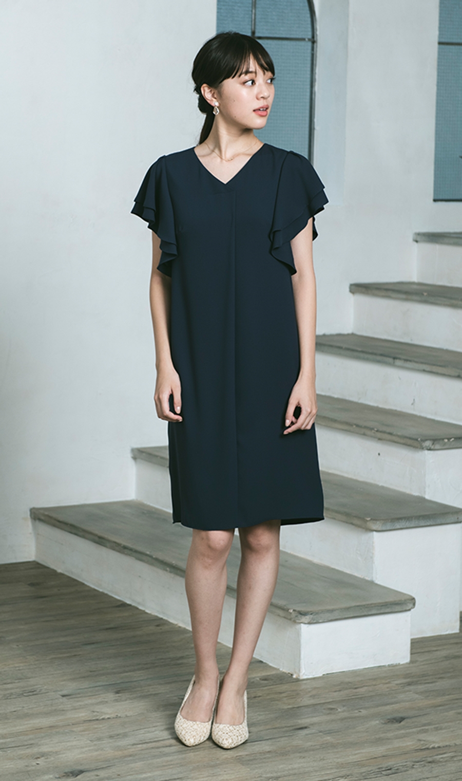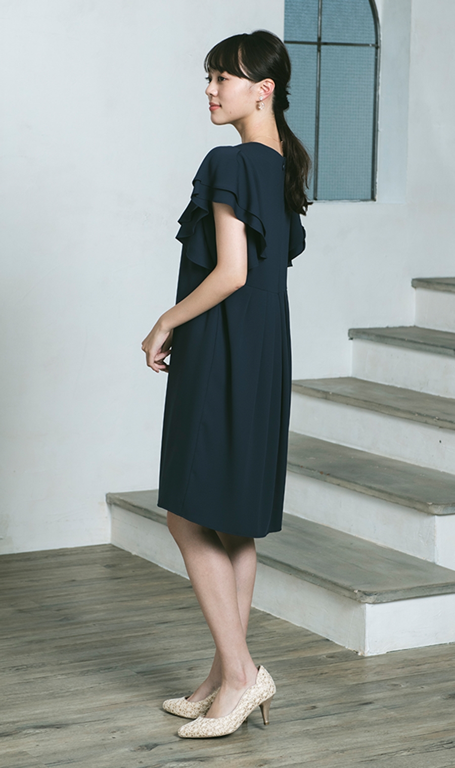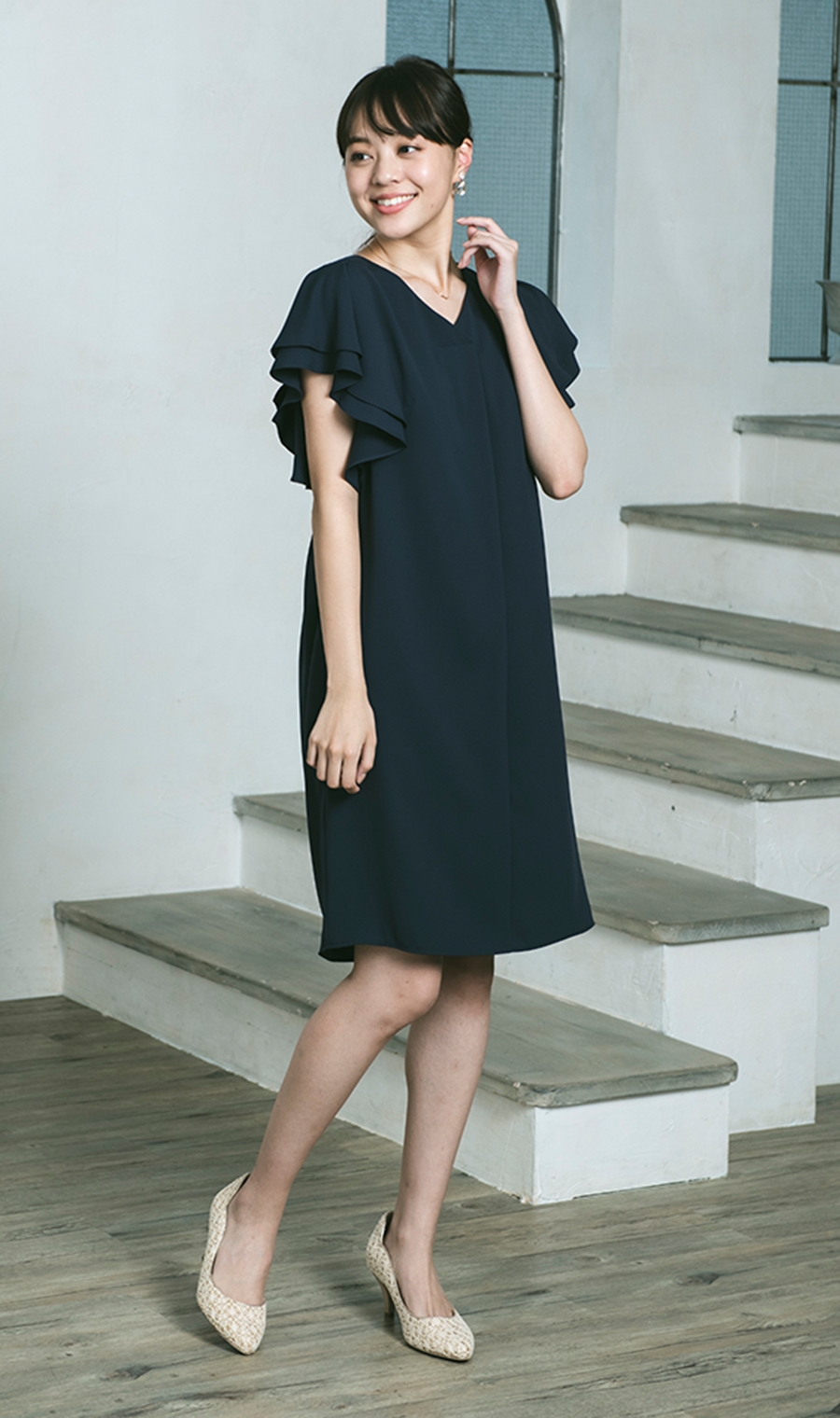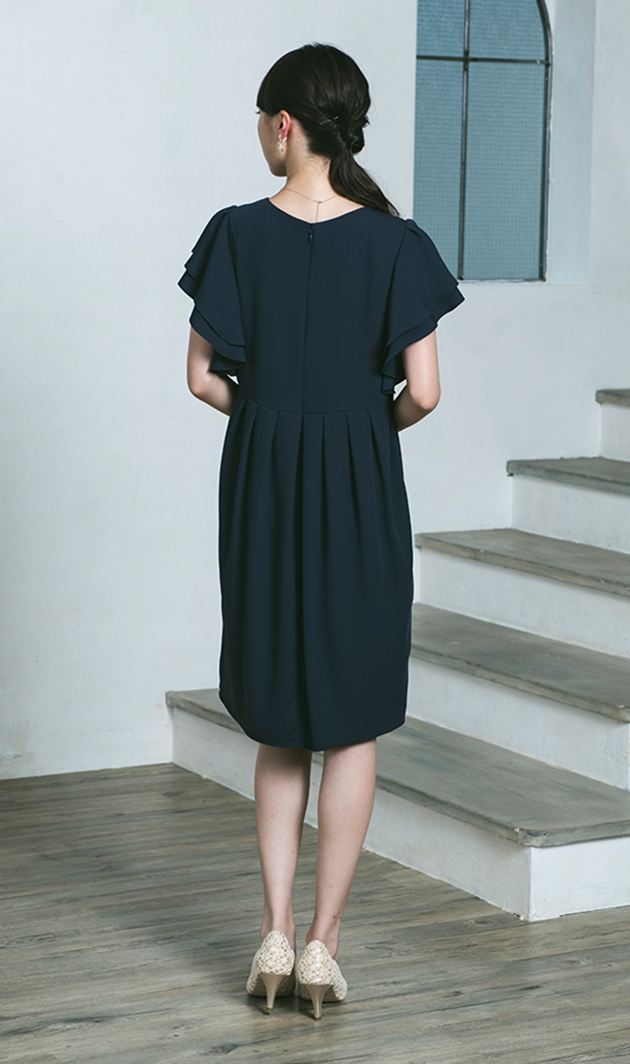 ふんわりと揺れる二枚仕立てのフリルスリーブが、