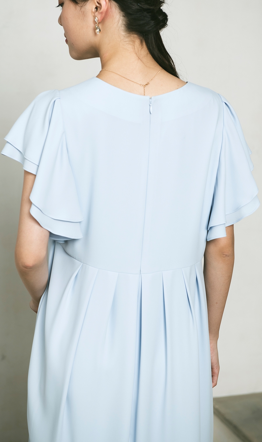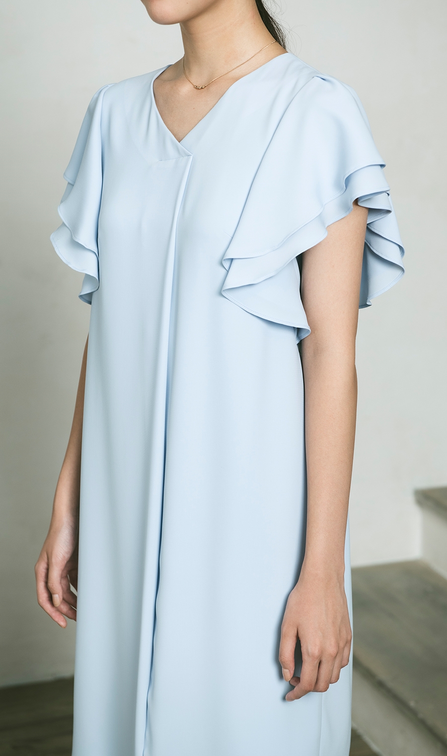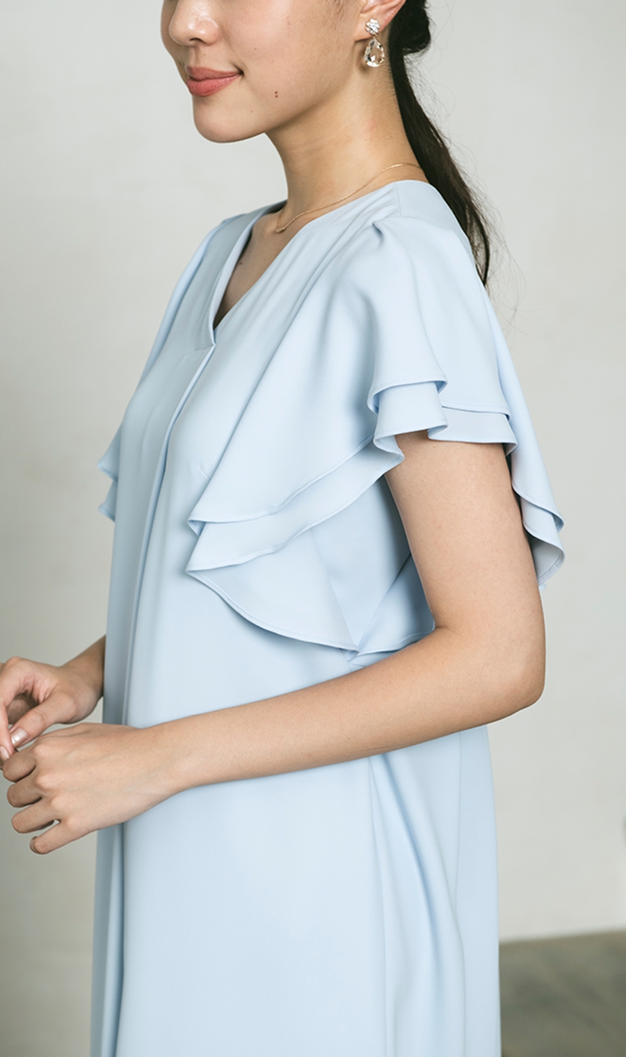ふんわりと揺れる二枚仕立てのフリルスリーブが、