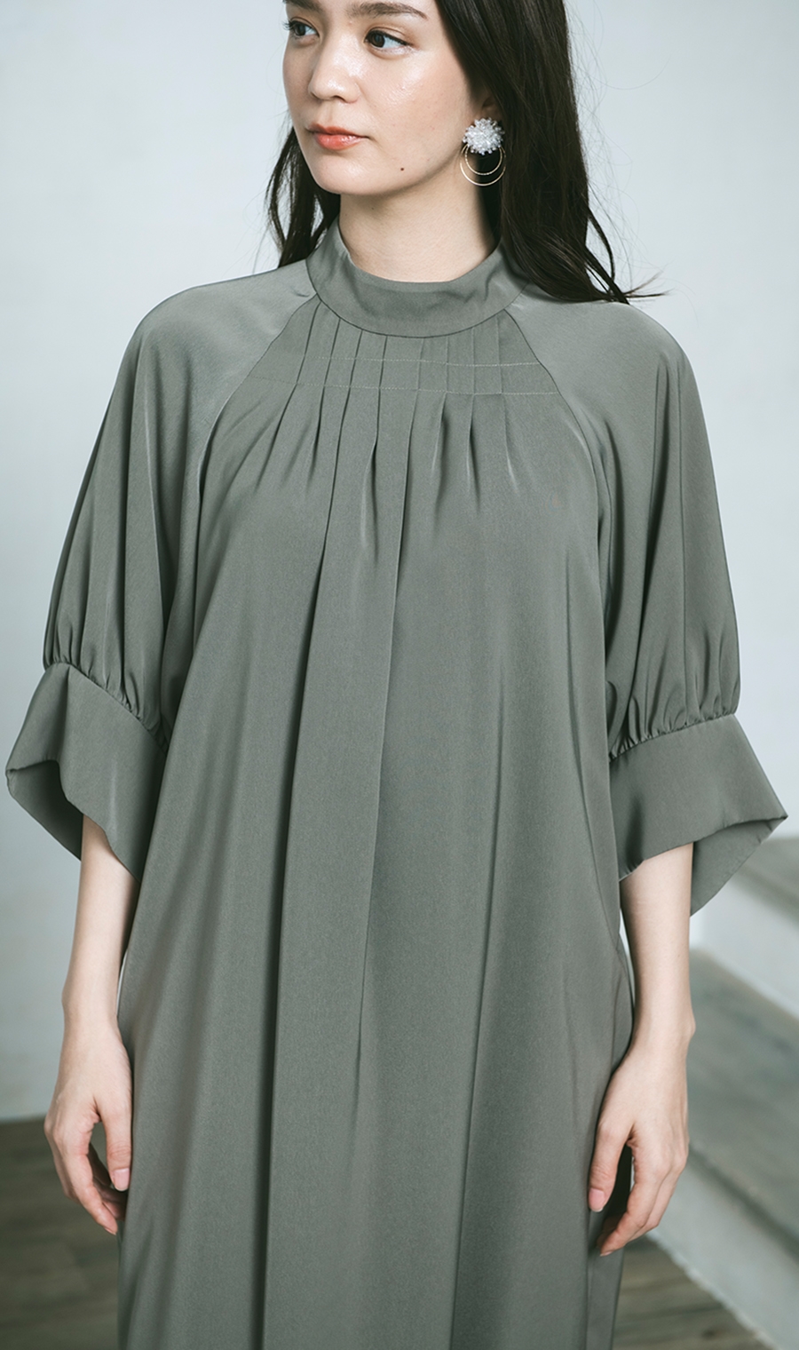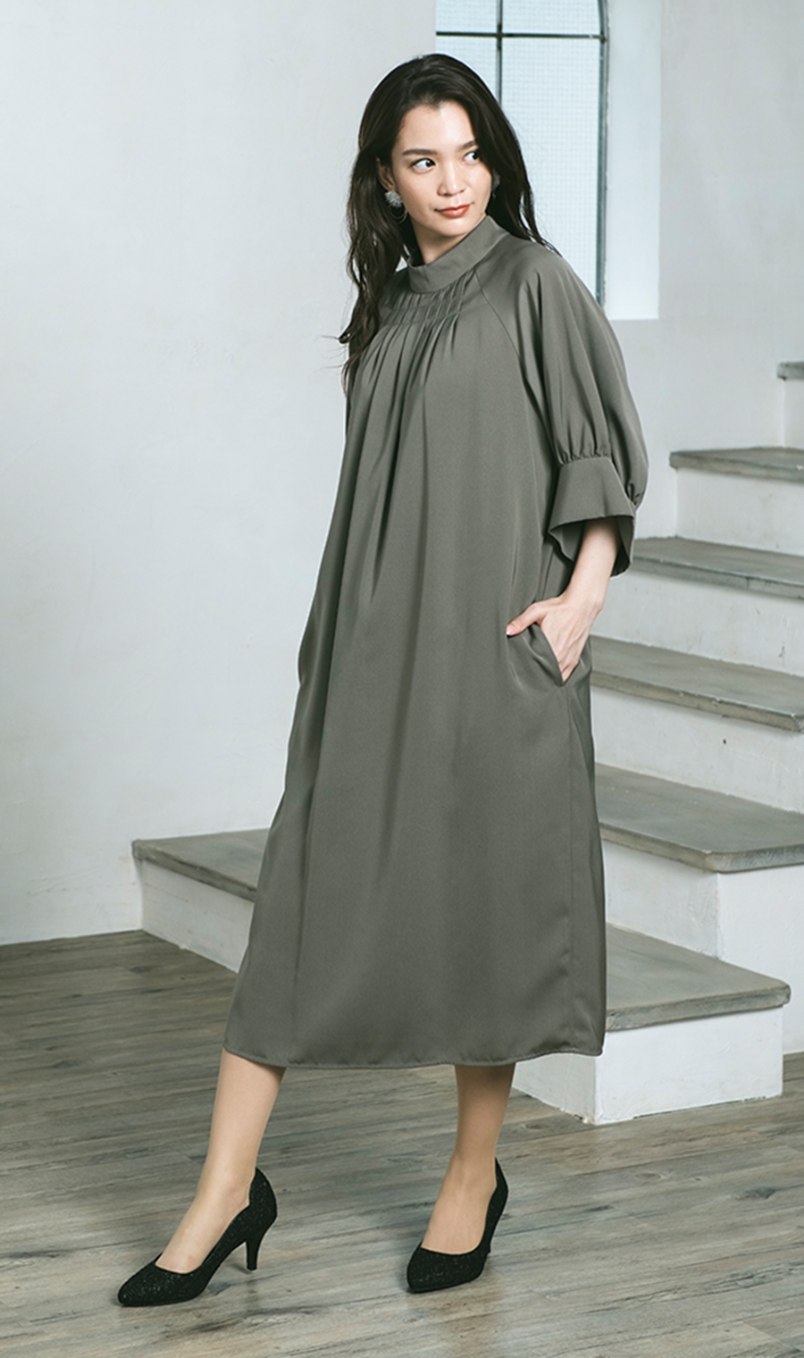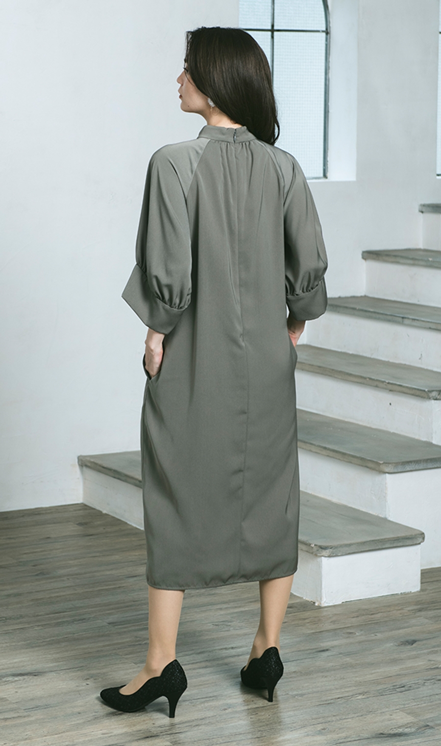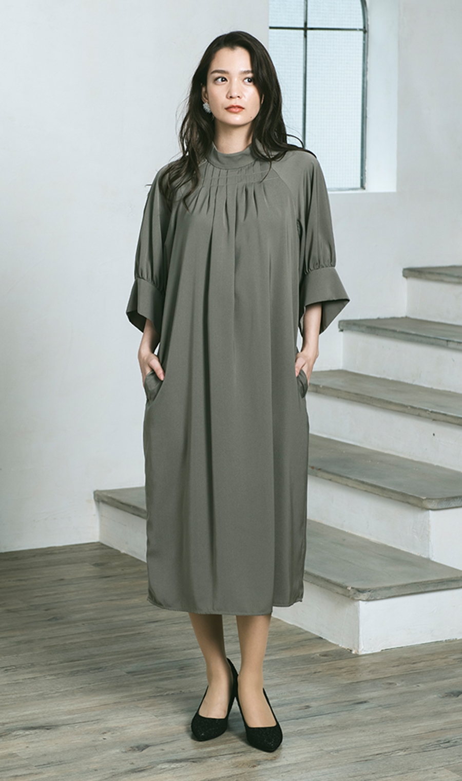 【ラグランボリュームスリーブドレス】