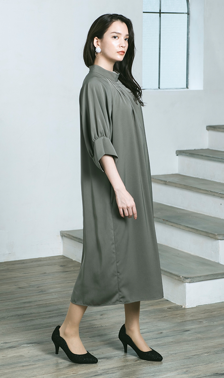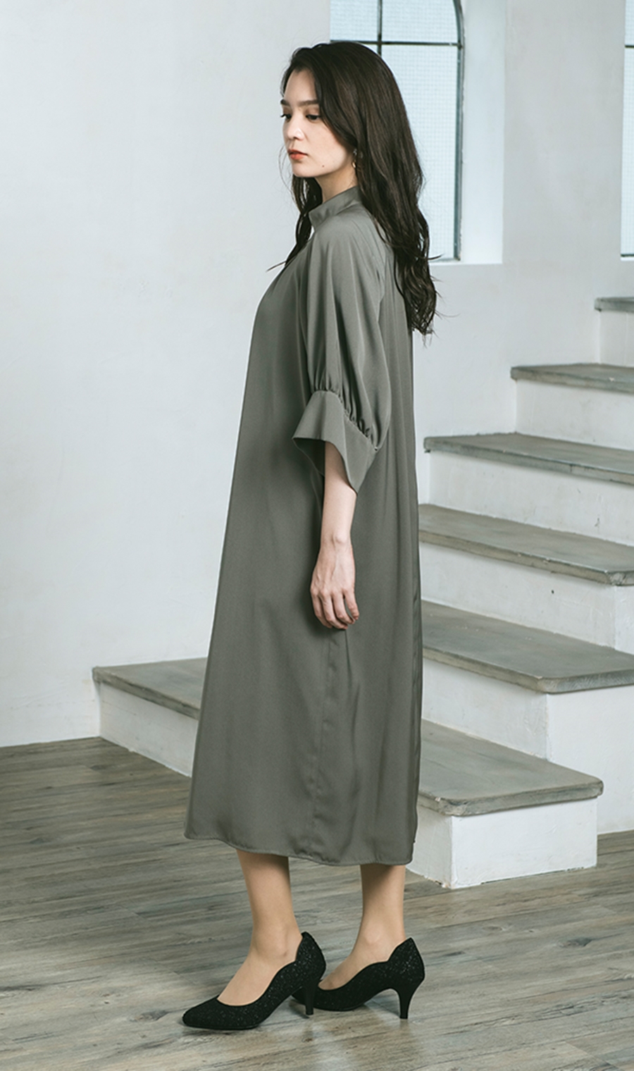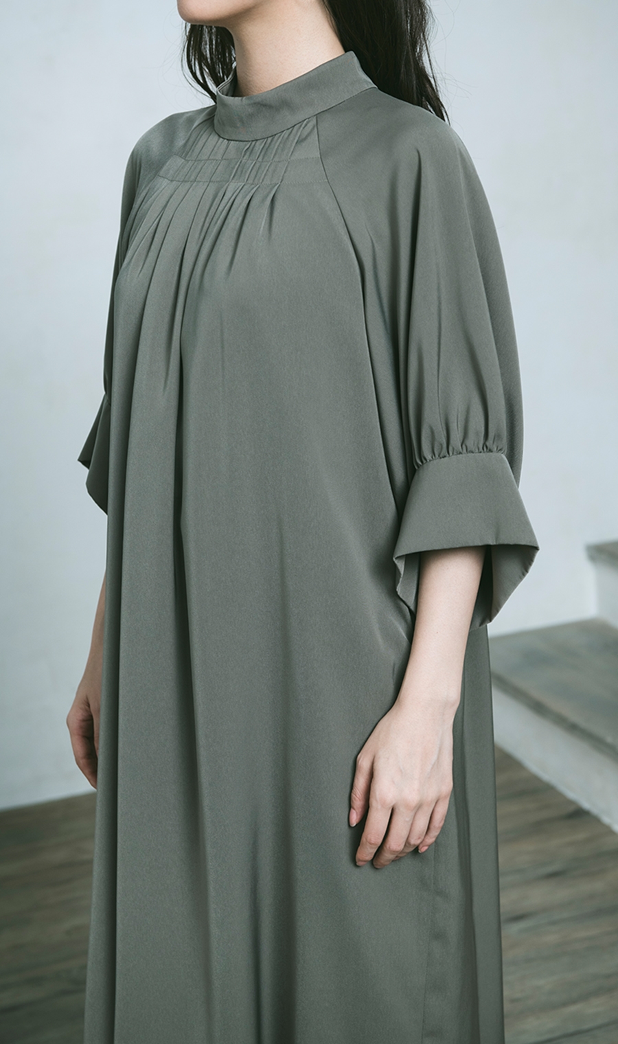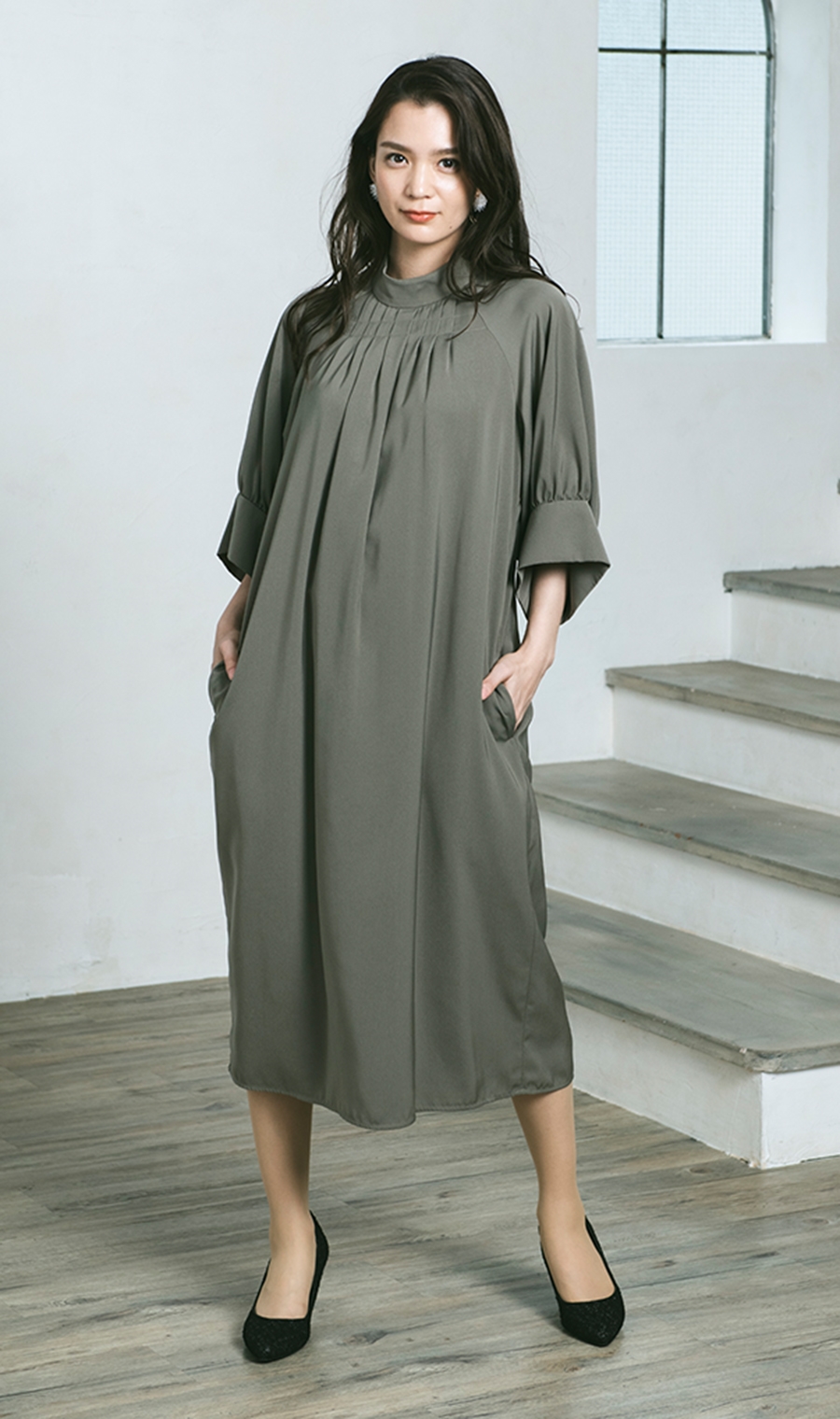 【ラグランボリュームスリーブドレス】