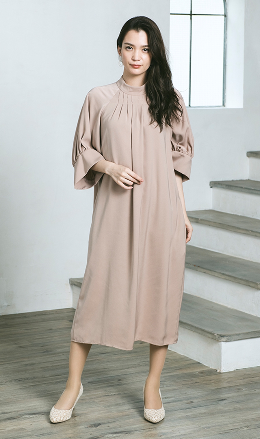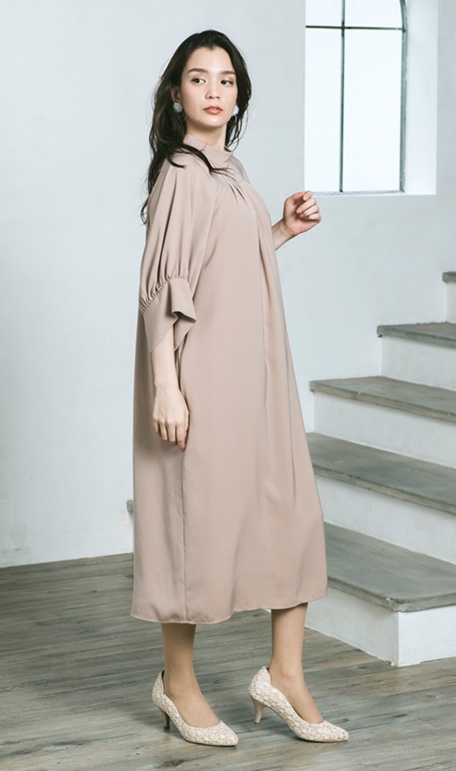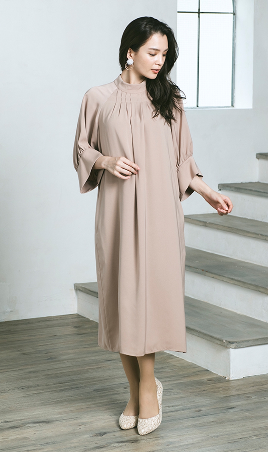 【ラグランボリュームスリーブドレス】