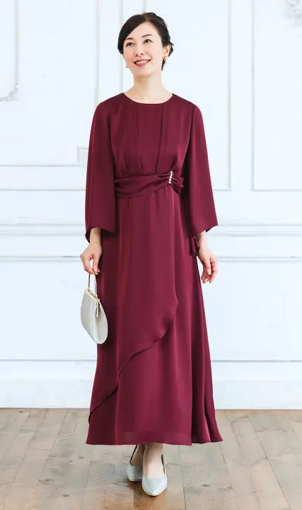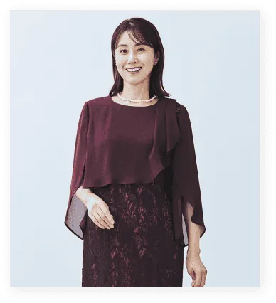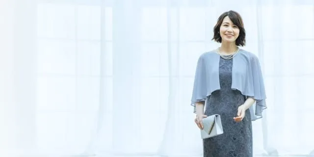 衣装選びで大切なのは、上品さと会場の雰囲気に寄り添う装い。新郎新婦の母親や格式ある場に臨むゲストとして、求められる格調を備えつつ、自信を引き立てる一着を演出します。